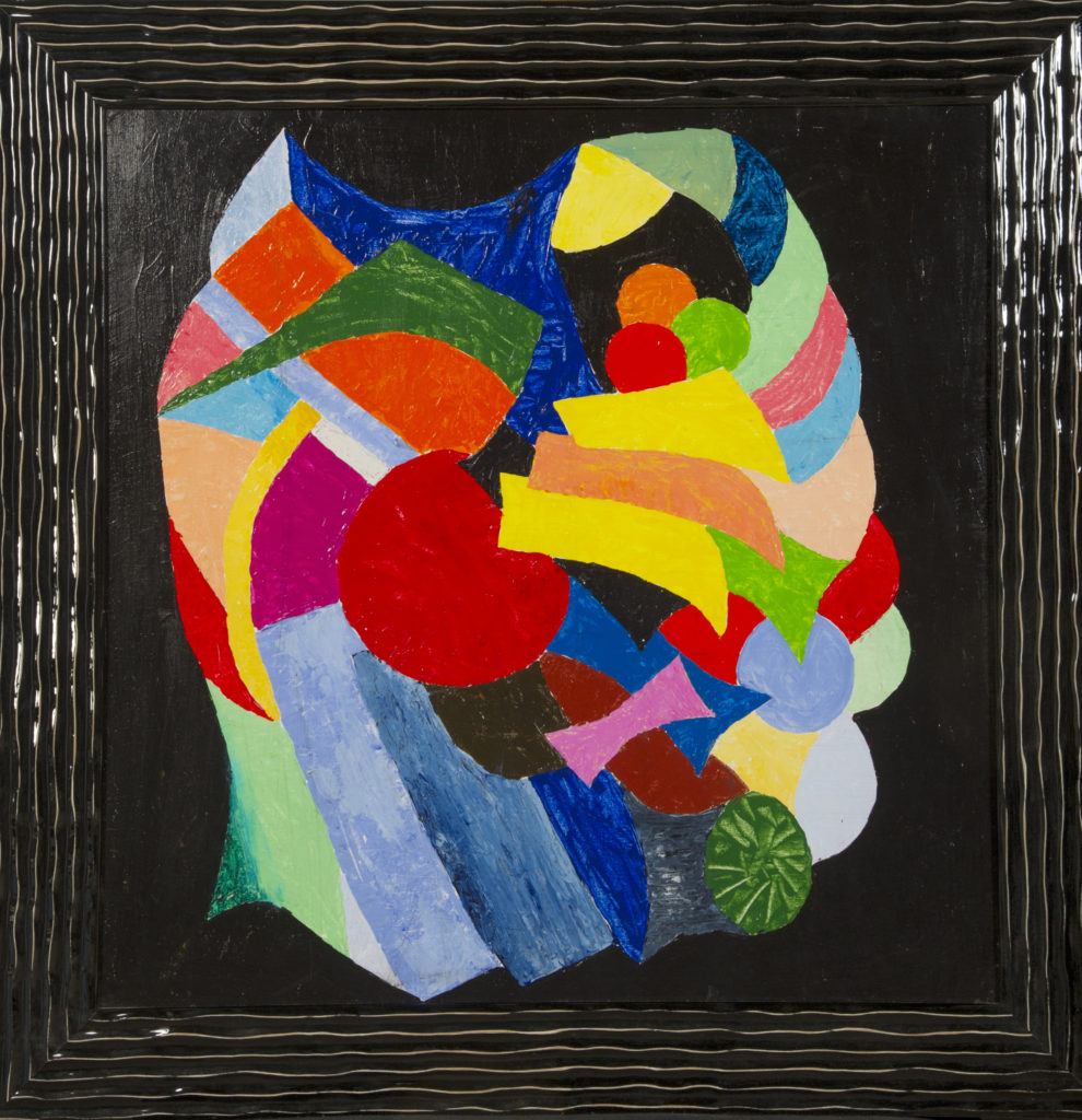 Acryl auf Papier gemalt und auf Karton aufgeklebt.